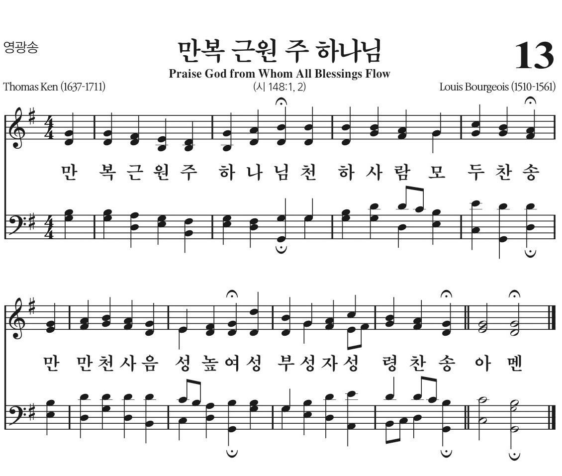 만복 근원 주 하나님 천하 사람 모두 찬송