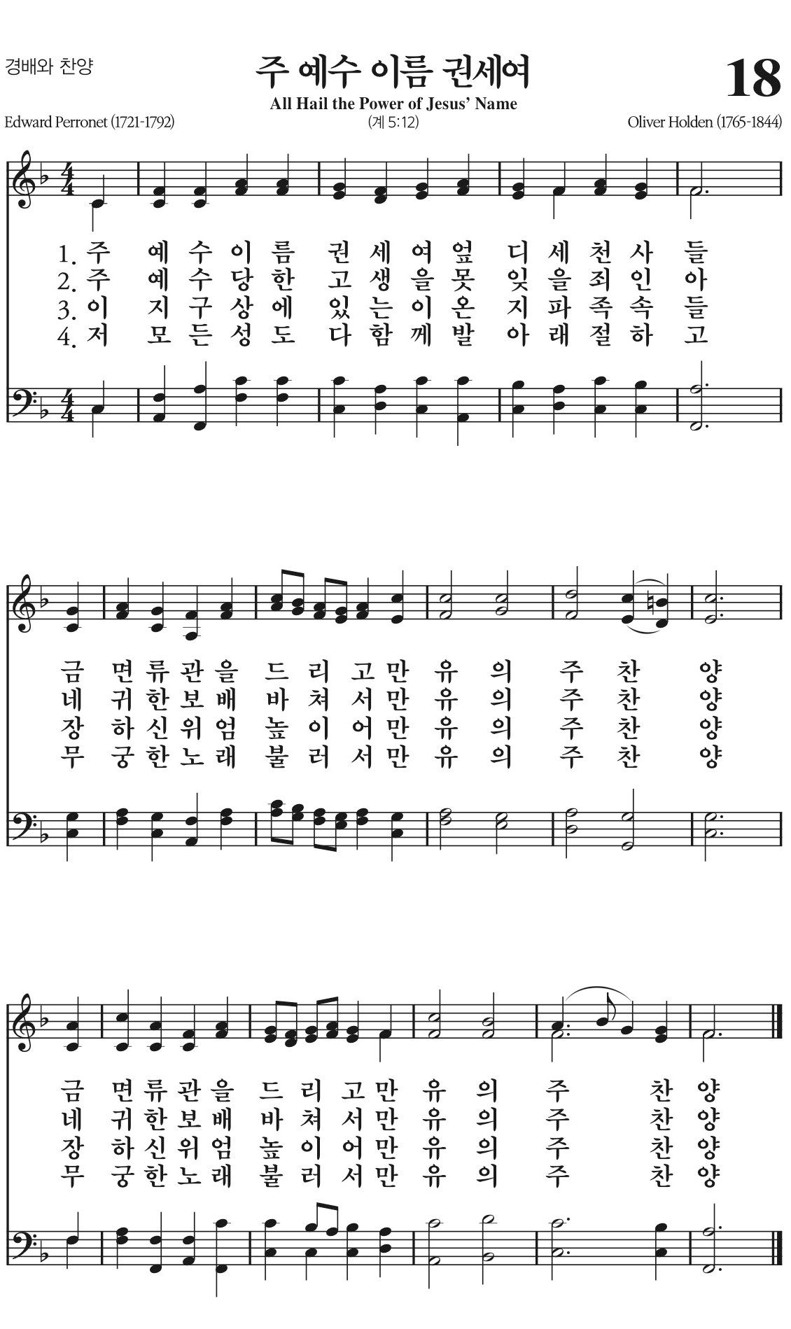 주 예수 이름 권세여 엎디세 천사들