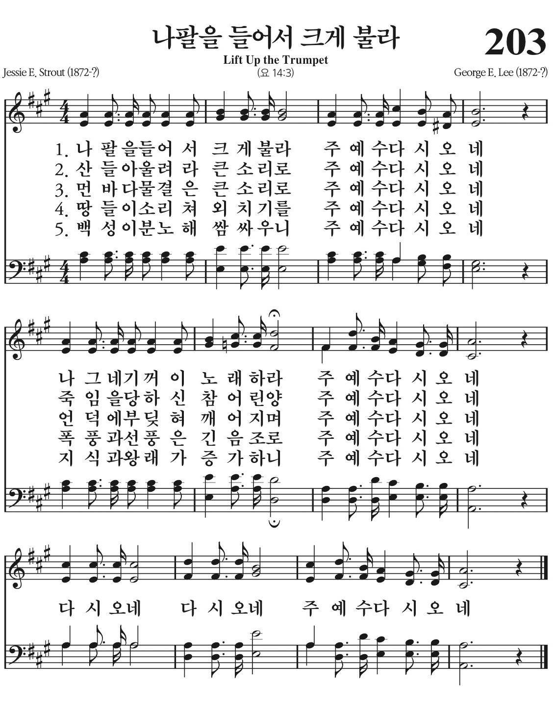 나팔을 들어서 크게 불라 주 예수 다시 오네