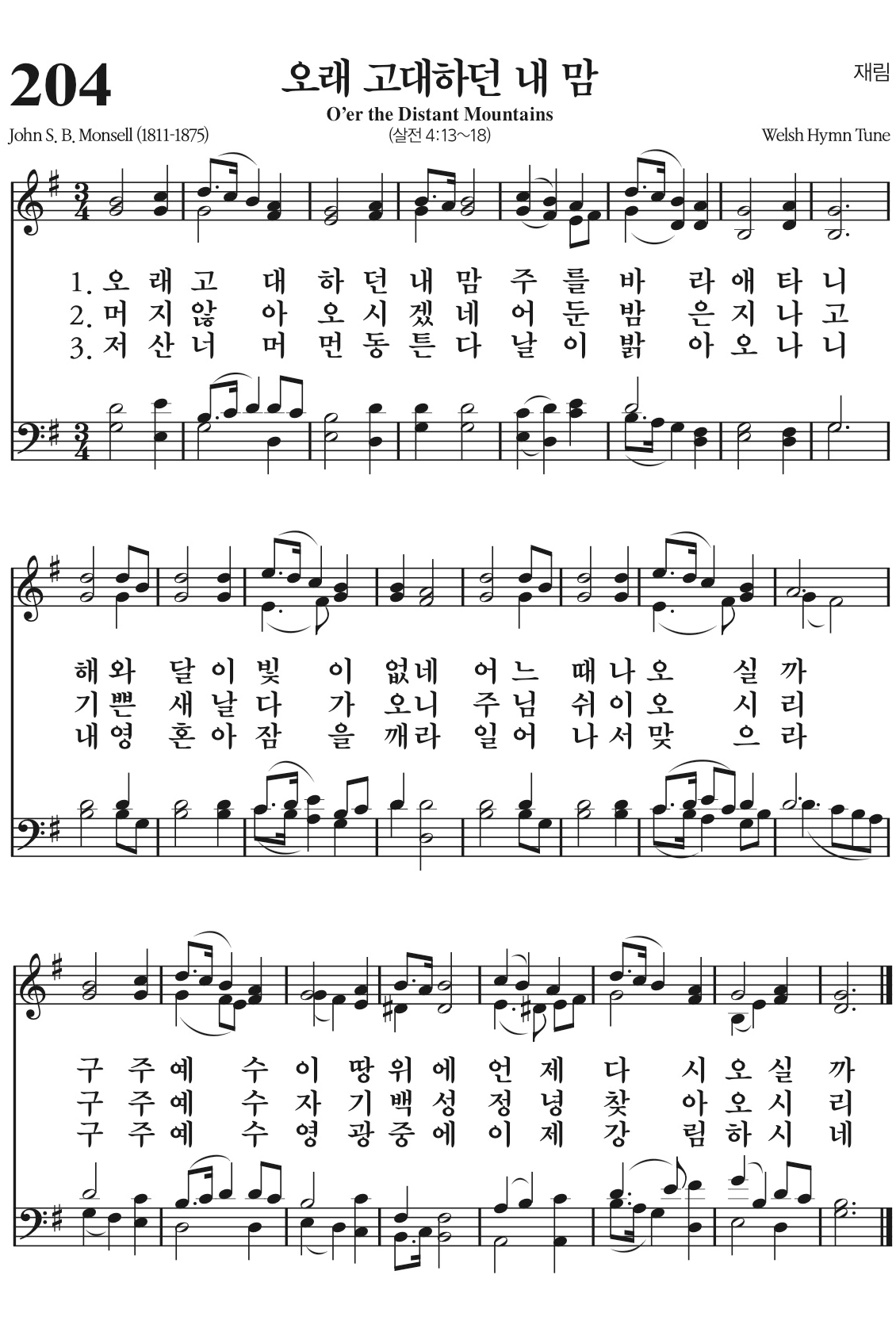 오래 고대하던 내 맘 주를 바라 애타니