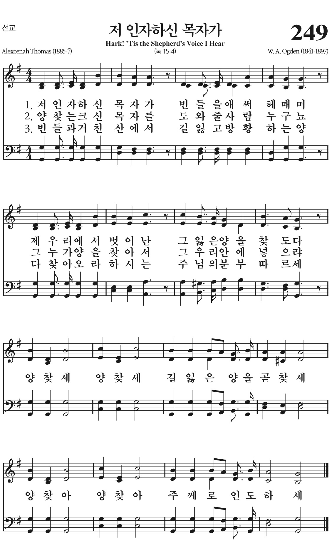 저 인자하신 목자가 빈 들을 애써 헤매며