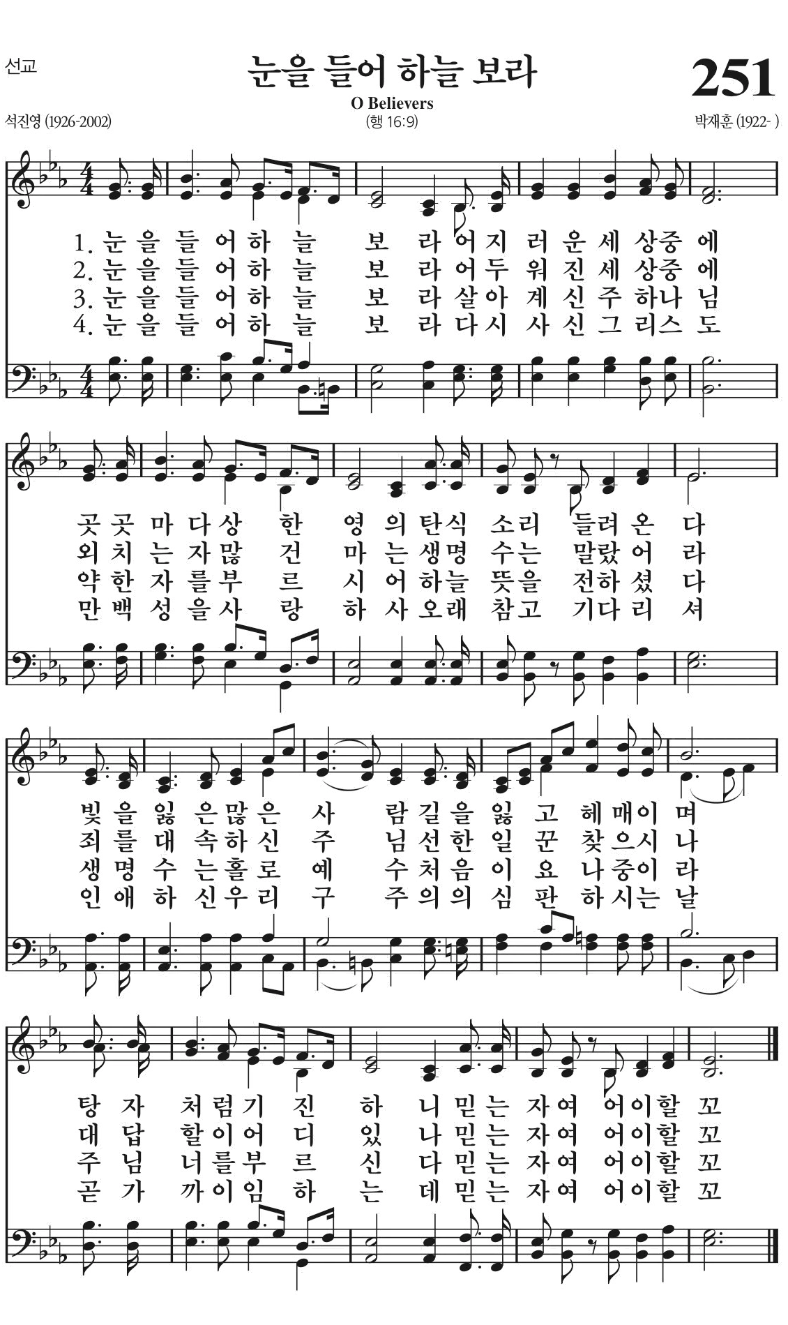 눈을 들어 하늘 보라 어두워진 세상 중에