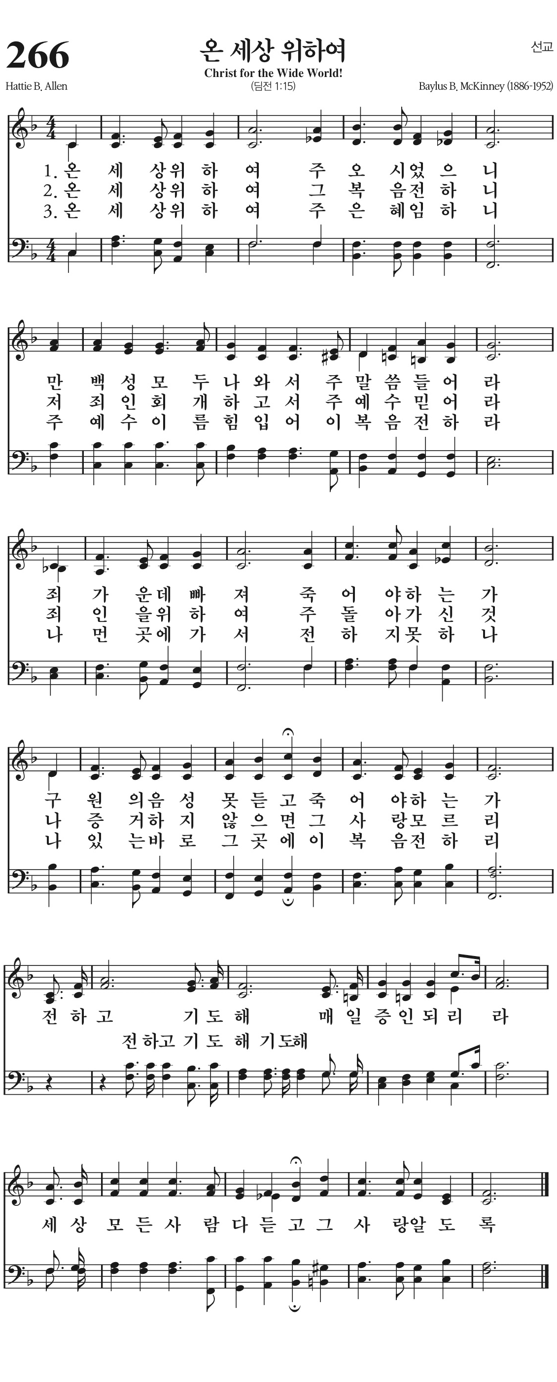 온 세상 위하여 그 복음 전하니