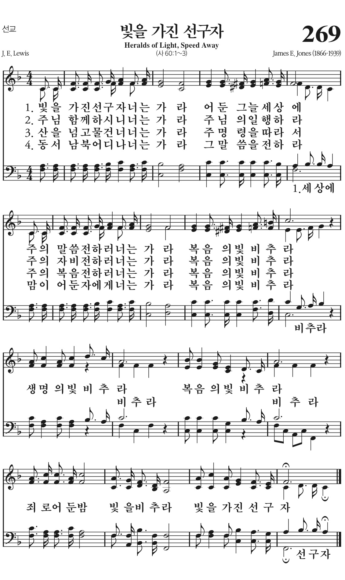 주의 말씀 전하러 너는 가라 복음의 빛 비추라