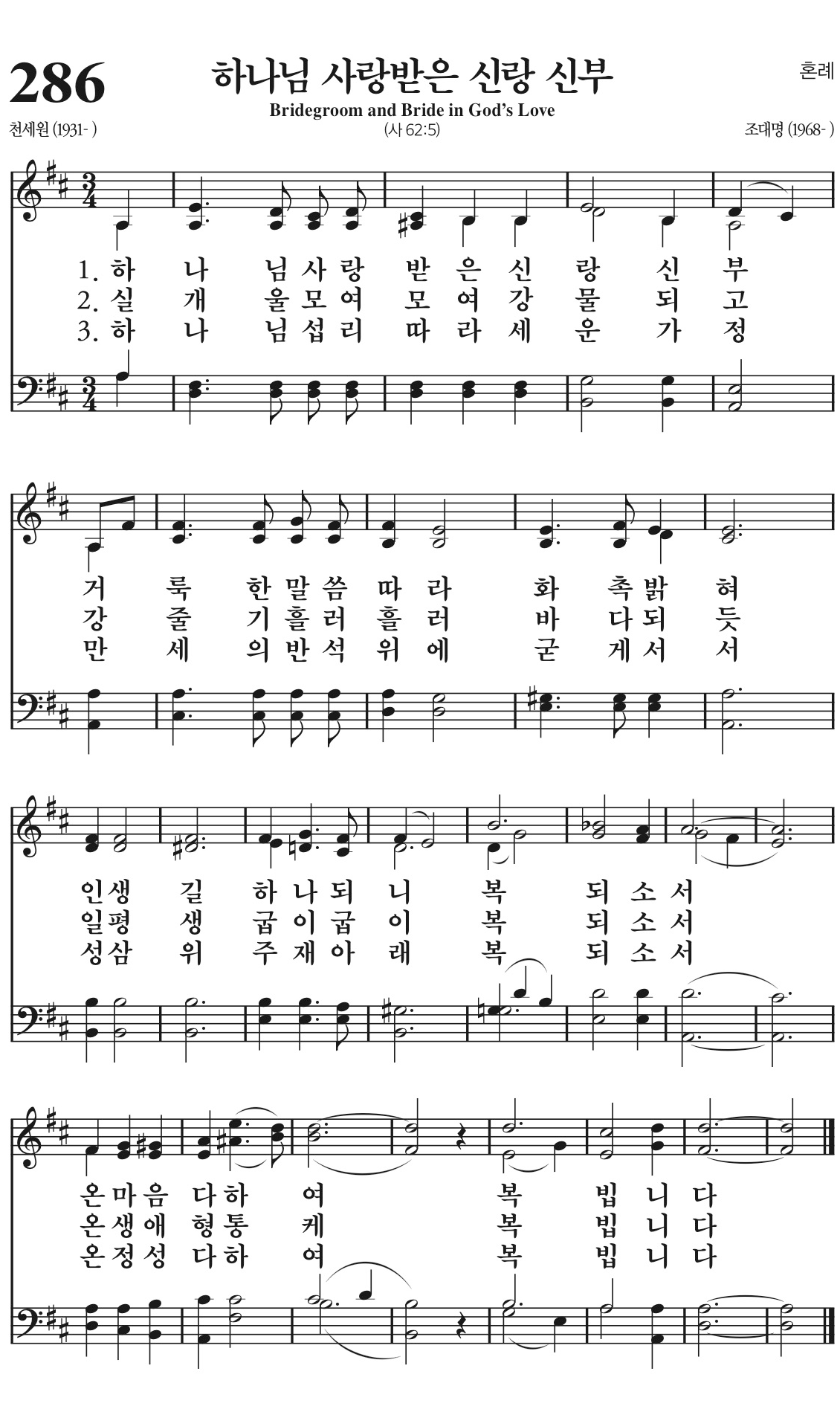인생길 하나 되니 복되소서