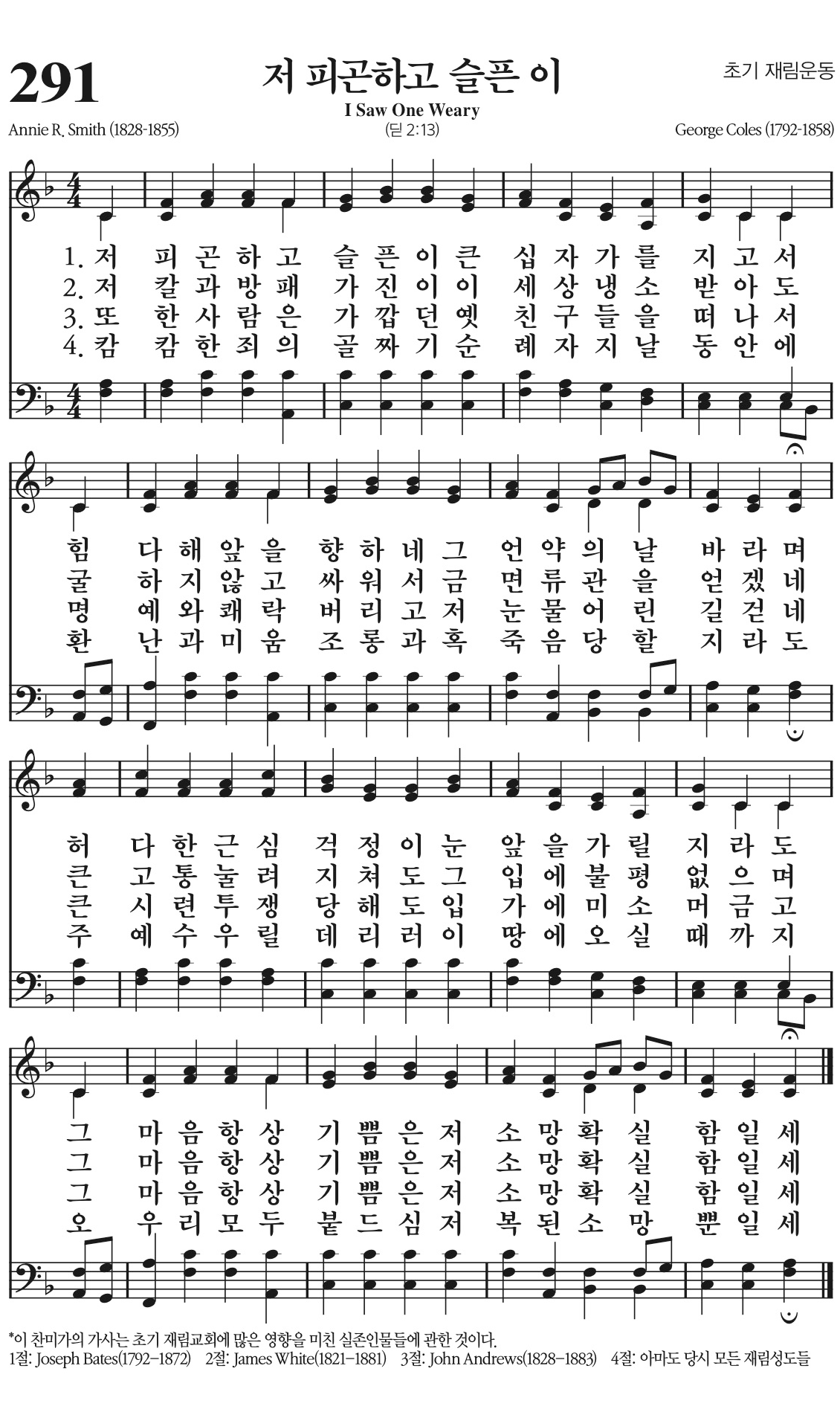 저 피곤하고 슬픈 이 큰 십자가를 지고서