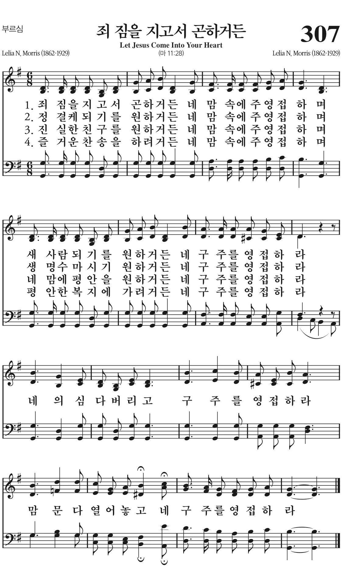 죄 짐을 지고서 곤하거든 네 맘속에 주 영접하며