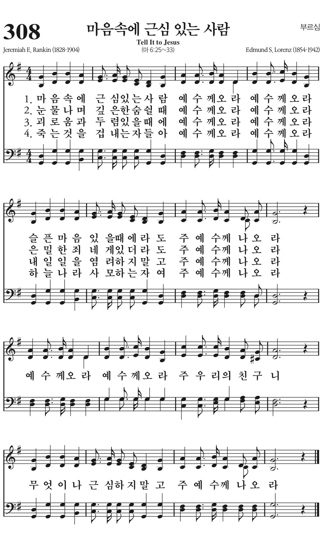 마음속에 근심 있는 사람 예수께 오라 예수께 오라