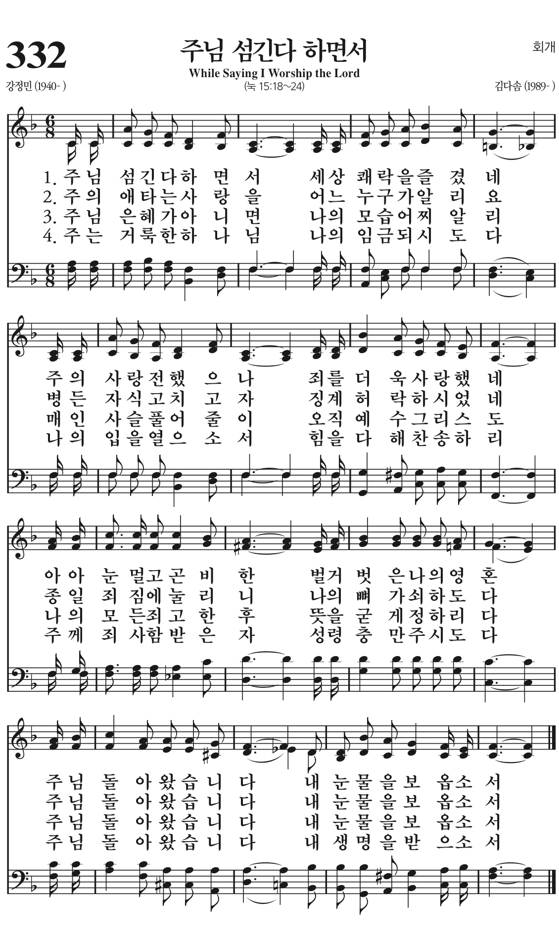 나의 모든 죄 고한 후 뜻을 굳게 정하리다