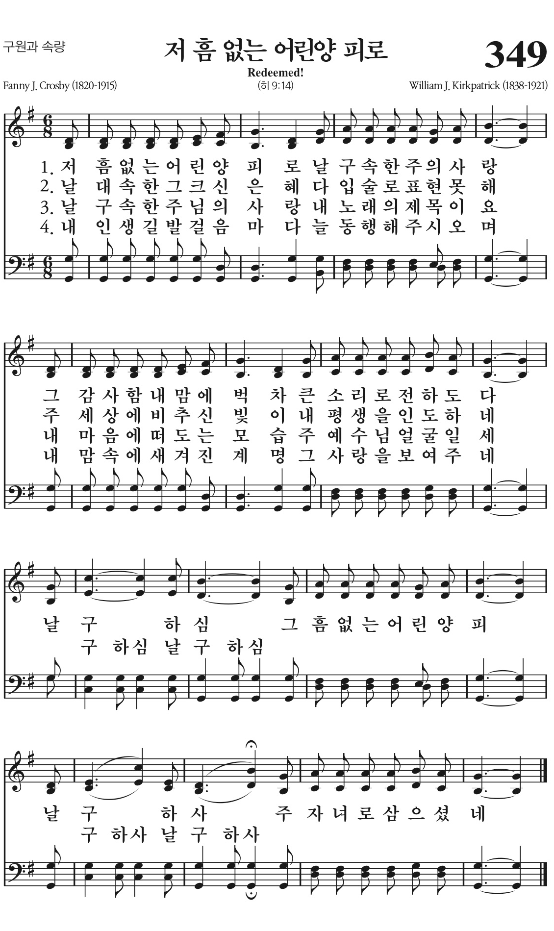 저 흠 없는 어린양 피로 날 구속한 주의 사랑