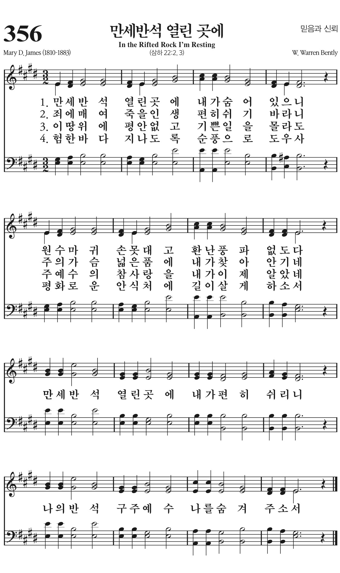만세반석 열린 곳에 내가 편히 쉬리니