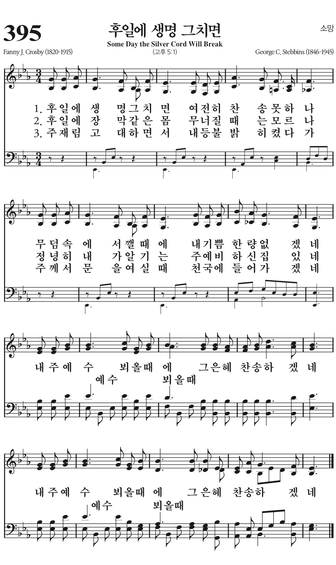 후일에 생명 그치면 여전히 찬송 못하나