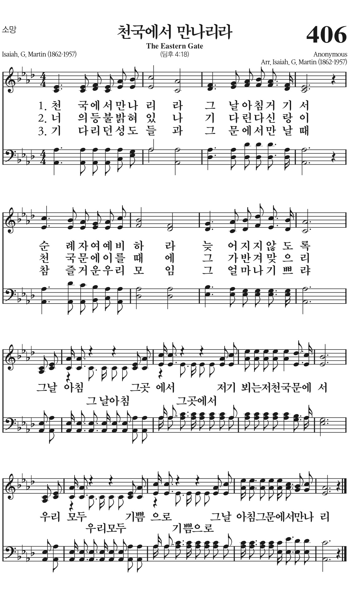 우리 모두 기쁨으로 그날 아침 그 문에서 만나리
