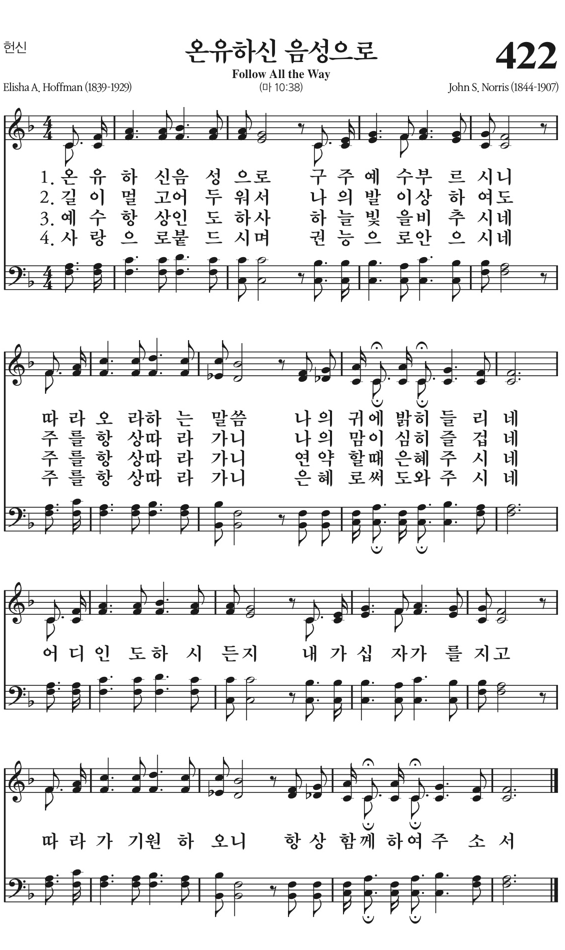 따라오라 하는 말씀 나의 귀에 밝히 들리네