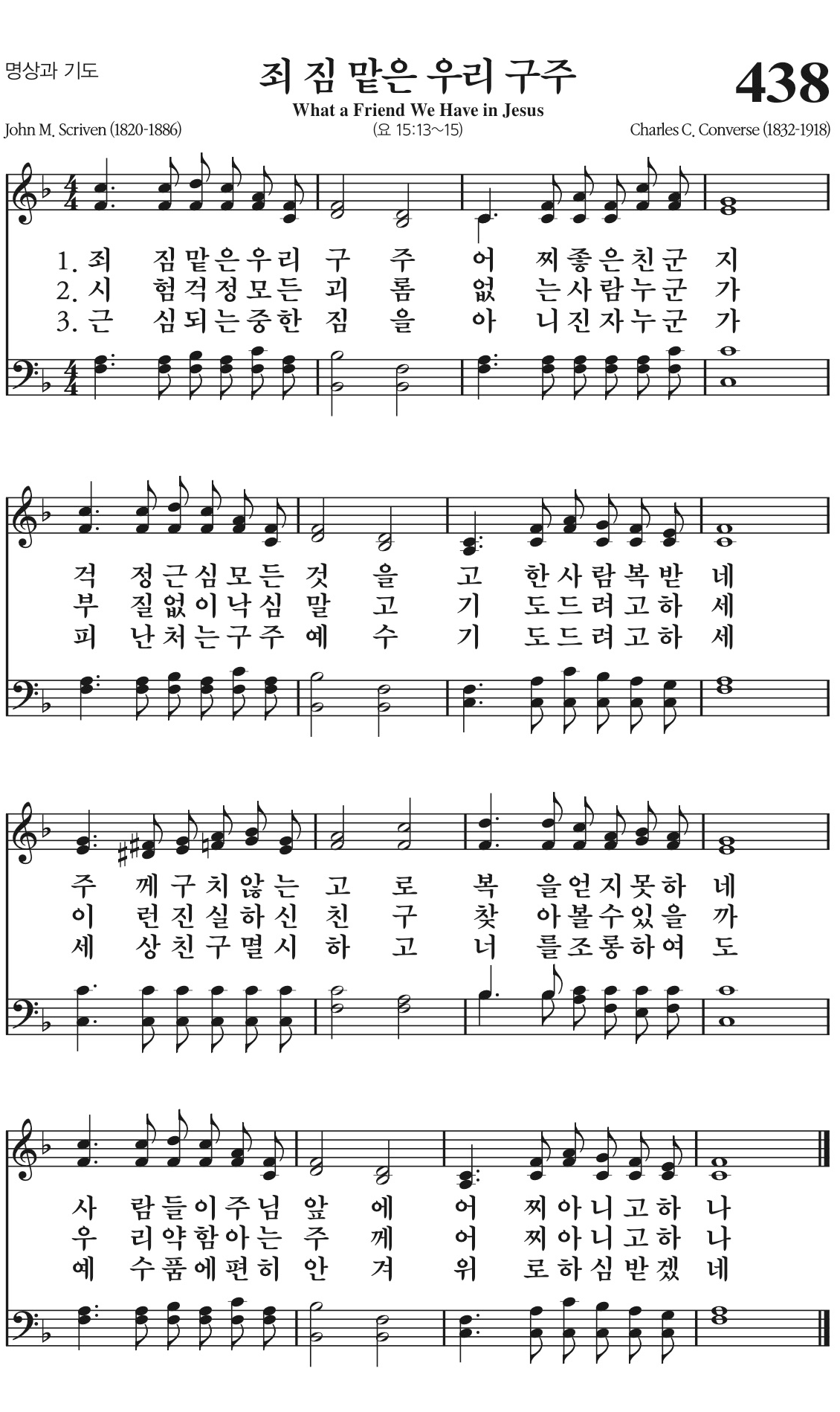 죄 짐 맡은 우리 구주 어찌 좋은 친군지