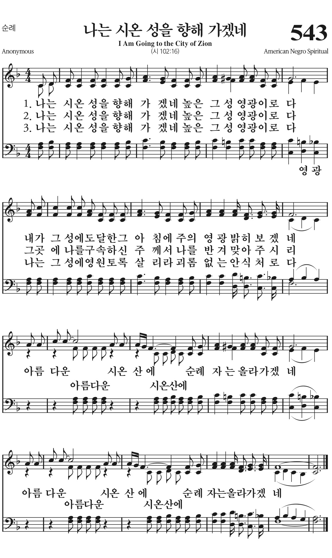 나는 시온 성을 향해 가겠네 높은 그 성 영광이로다