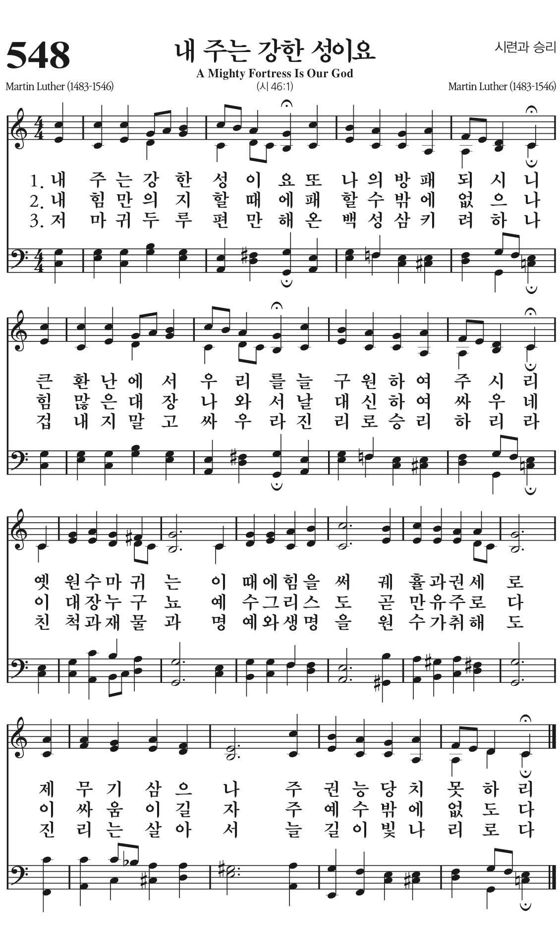 내 주는 강한 성이요 또 나의 방패 되시니