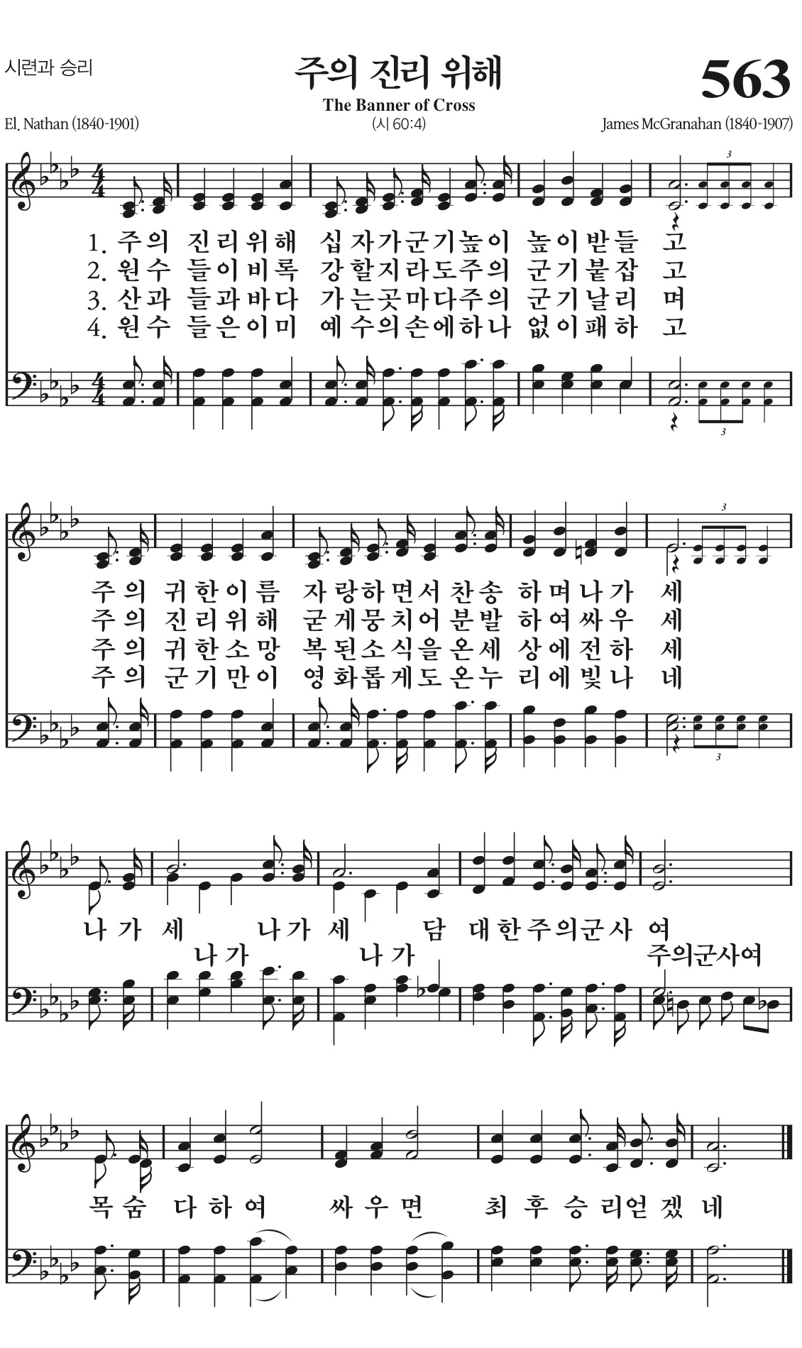 원수들이 비록 강할지라도 주의 군기 붙잡고