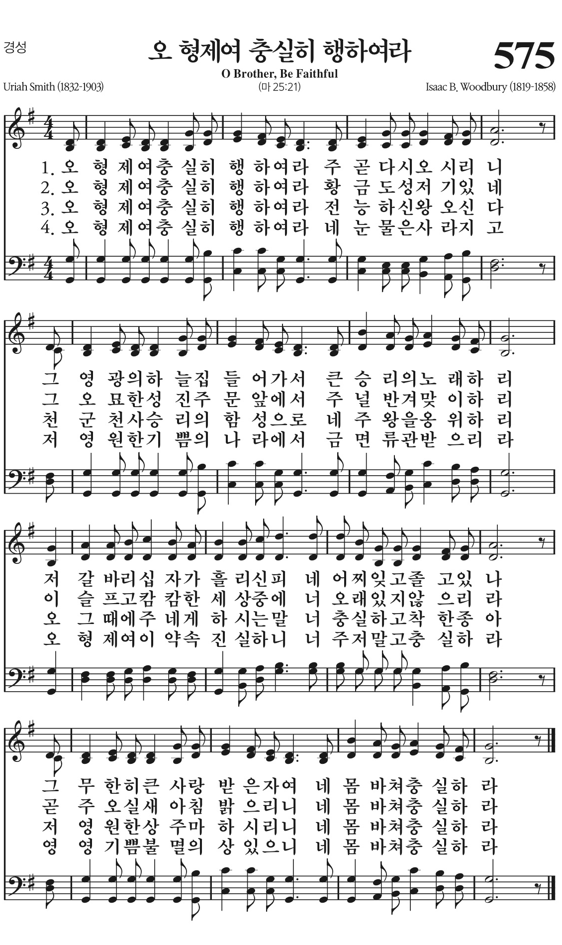 오 형제여 충실히 행하여라 주 곧 다시 오시리니