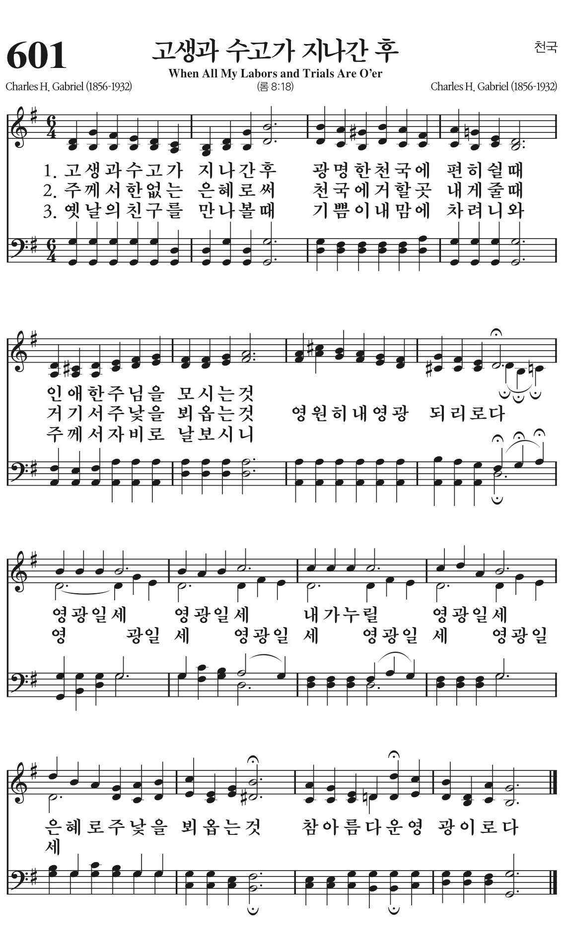 거기서 주 낯을 뵈옵는 것 영원히 내 영광되리로다