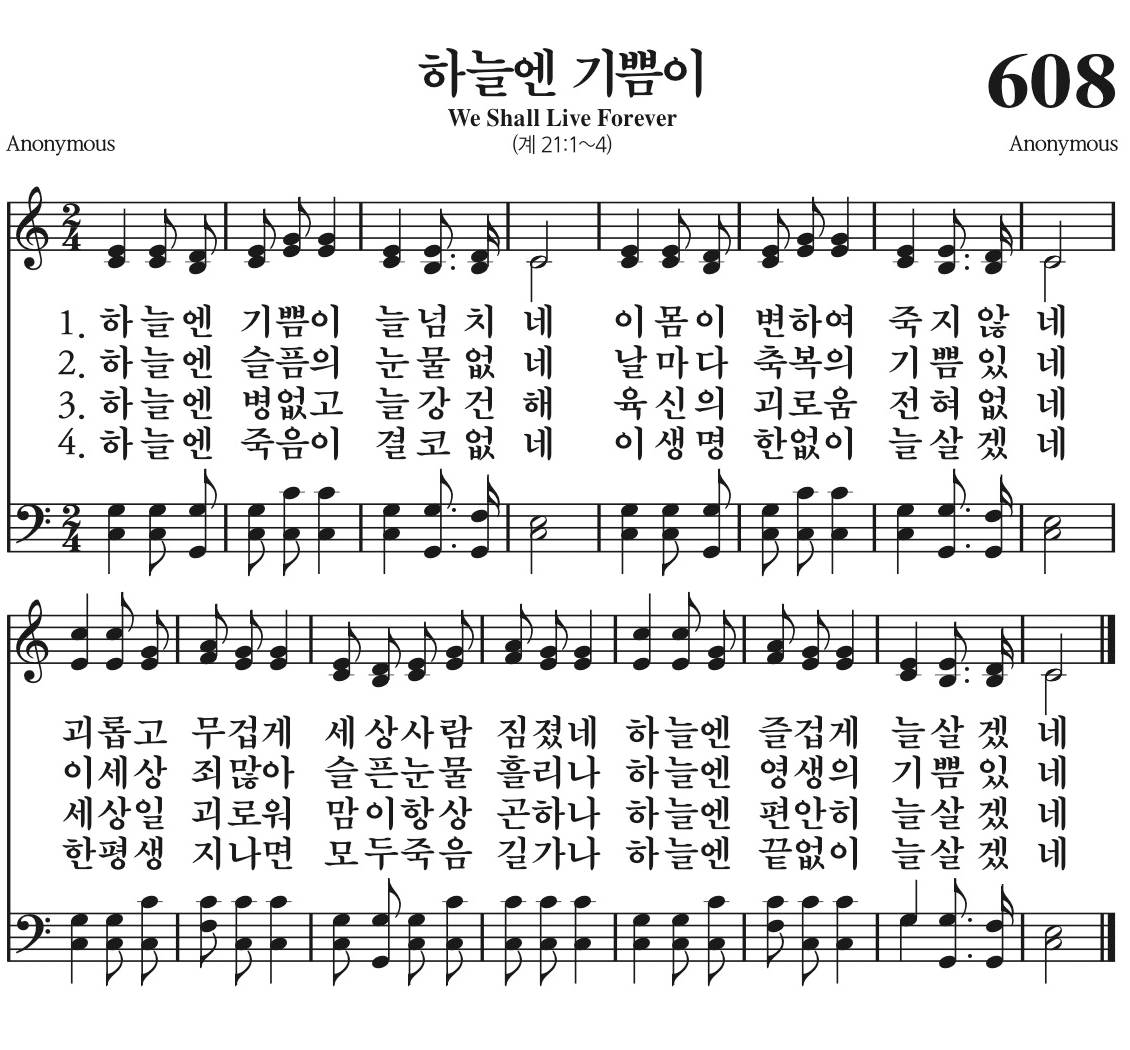 하늘엔 영생의 기쁨 있네