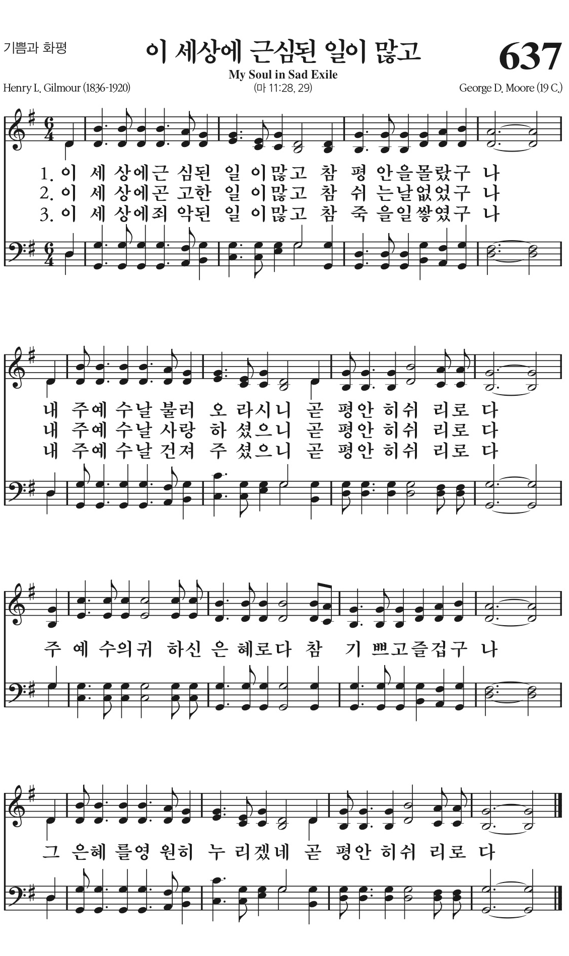 이 세상에 근심된 일이 많고 참평안을 몰랐구나