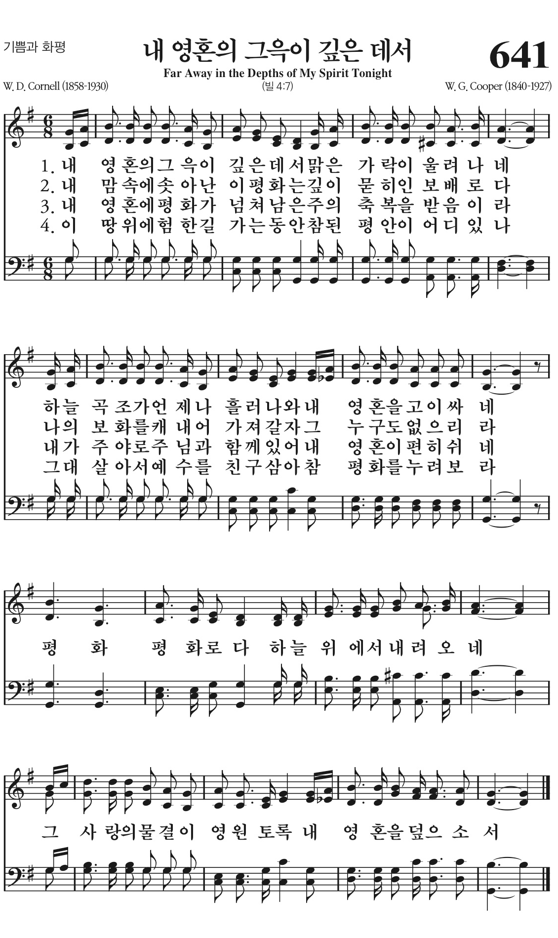 내 맘속에 솟아난 이 평화는 깊이 묻히인 보배로다