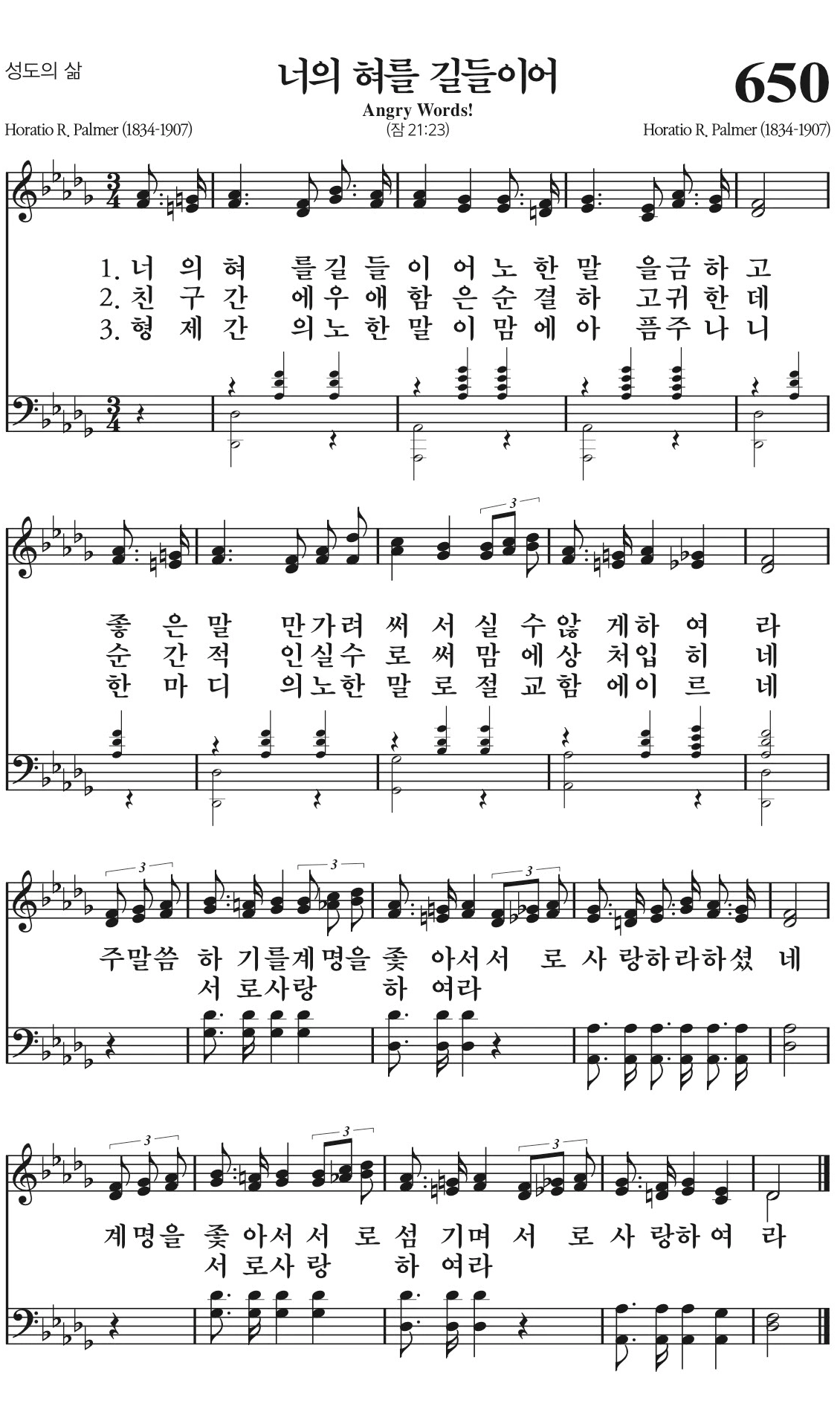 너의 혀를 길들이어 노한 말을 금하고