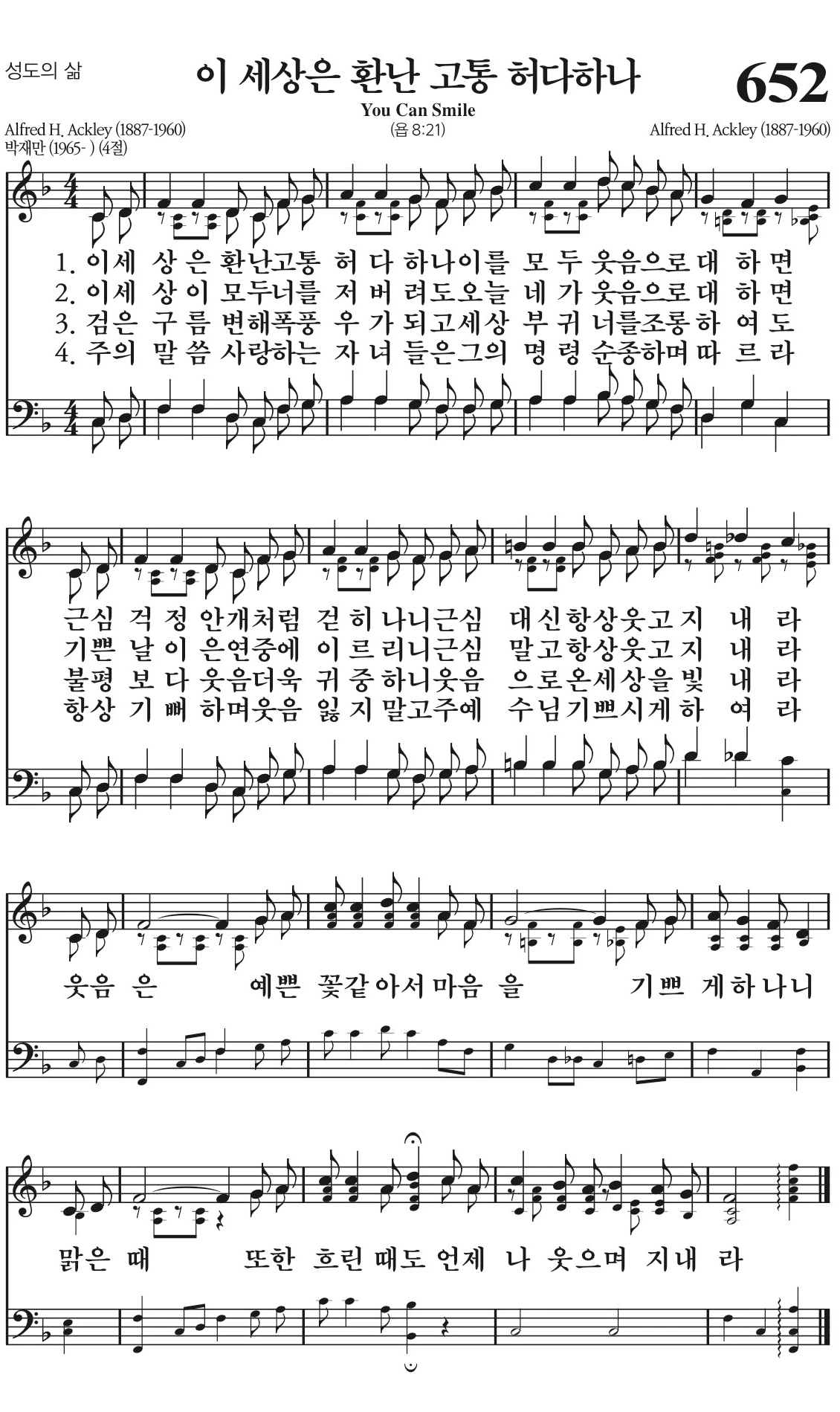 이 세상은 환난 고통 허다하나 이를 모두 웃음으로 대하면