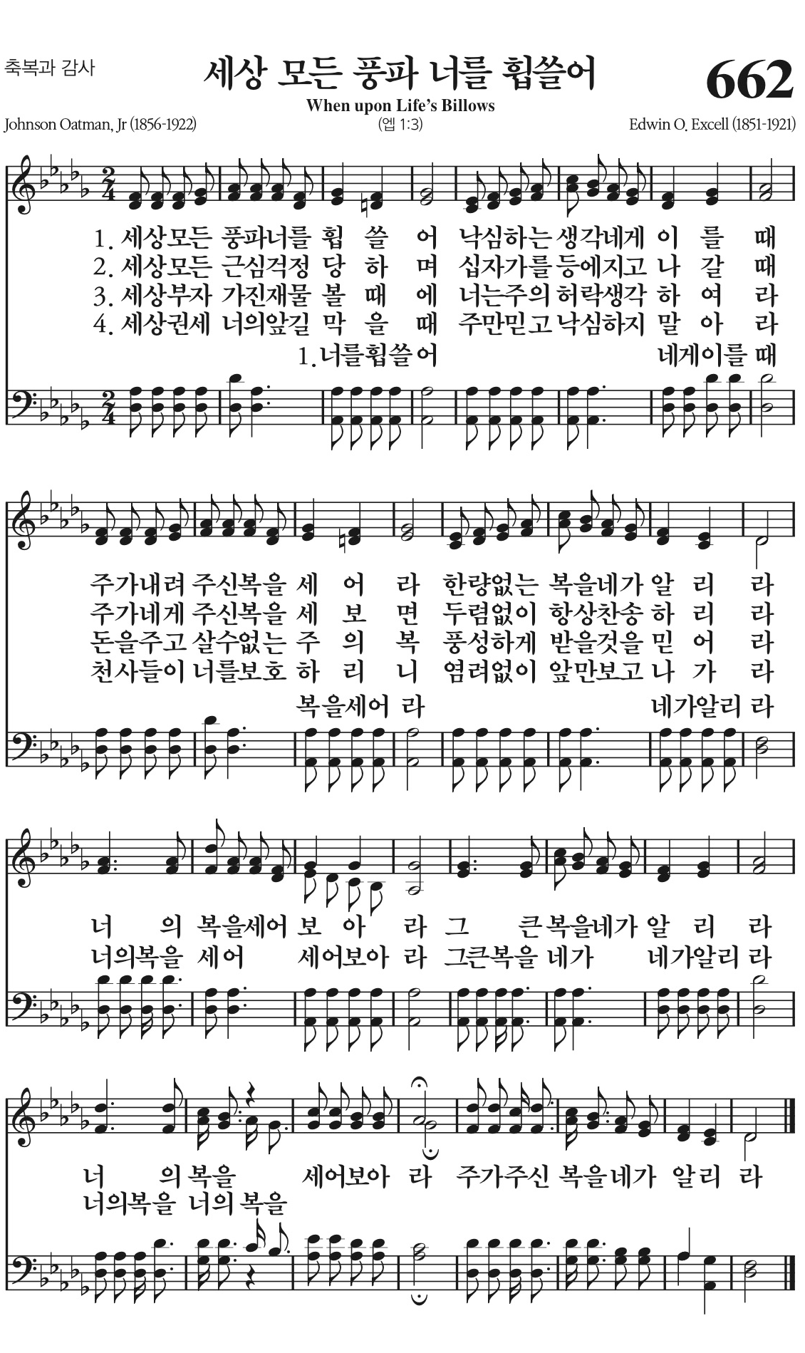 주가 네게 주신 복을 세 보면 두렴 없이 항상 찬송하리라
