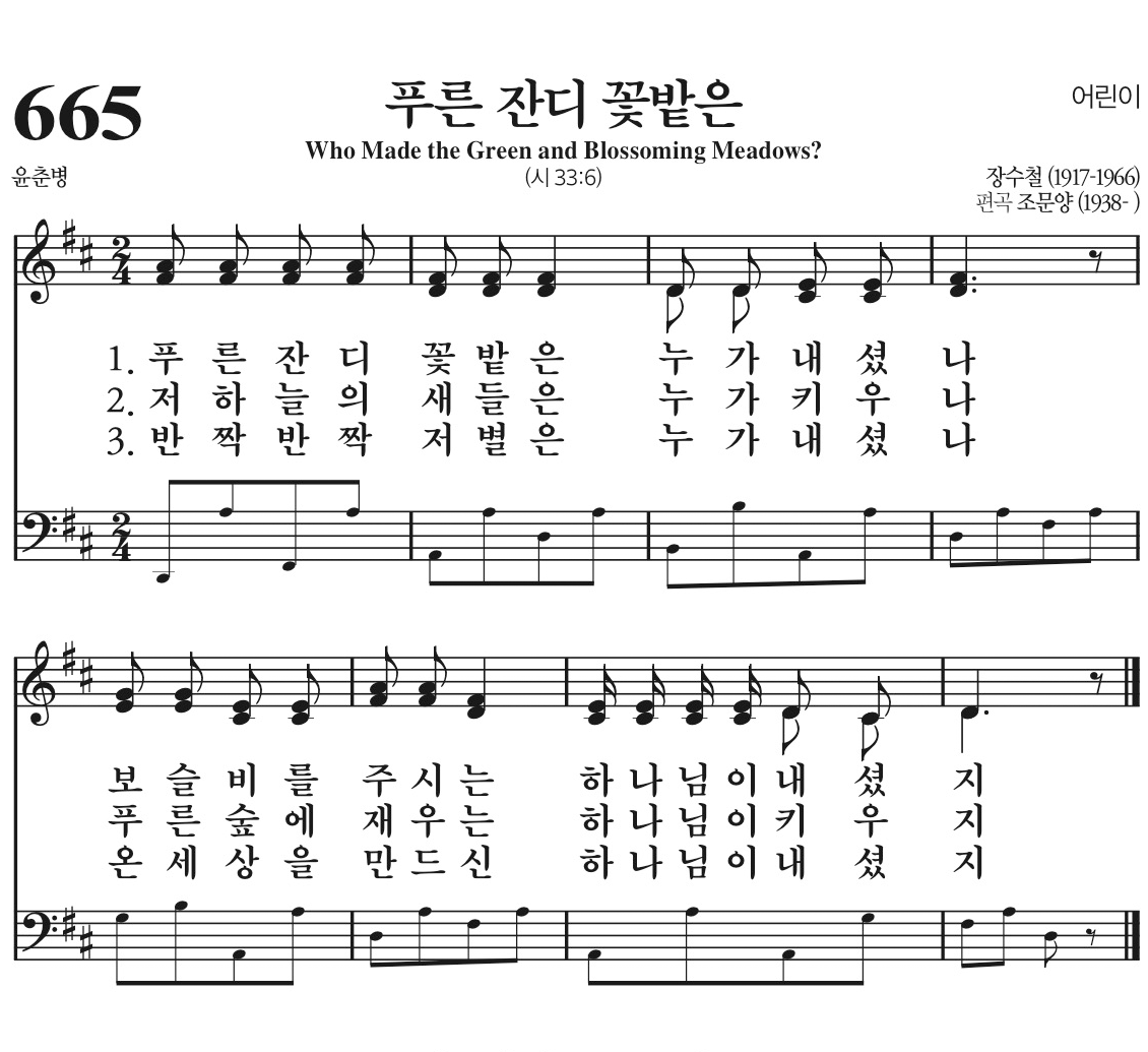 푸른 잔디 꽃밭은 누가 내셨나