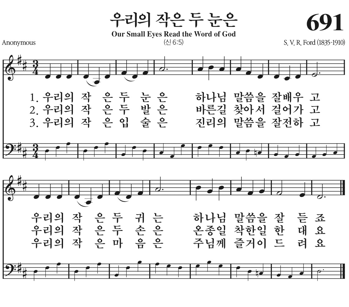 우리의 작은 두 눈은 하나님 말씀을 잘 배우고