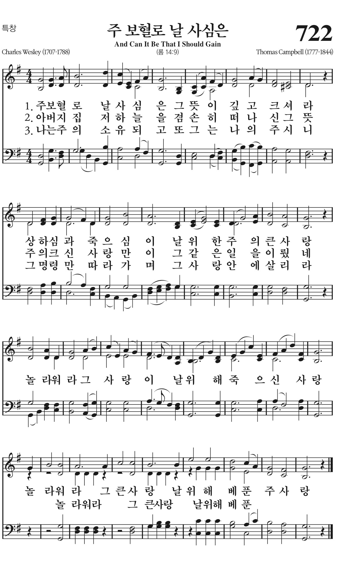 주 보혈로 날 사심은 그 뜻이 깊고 크셔라