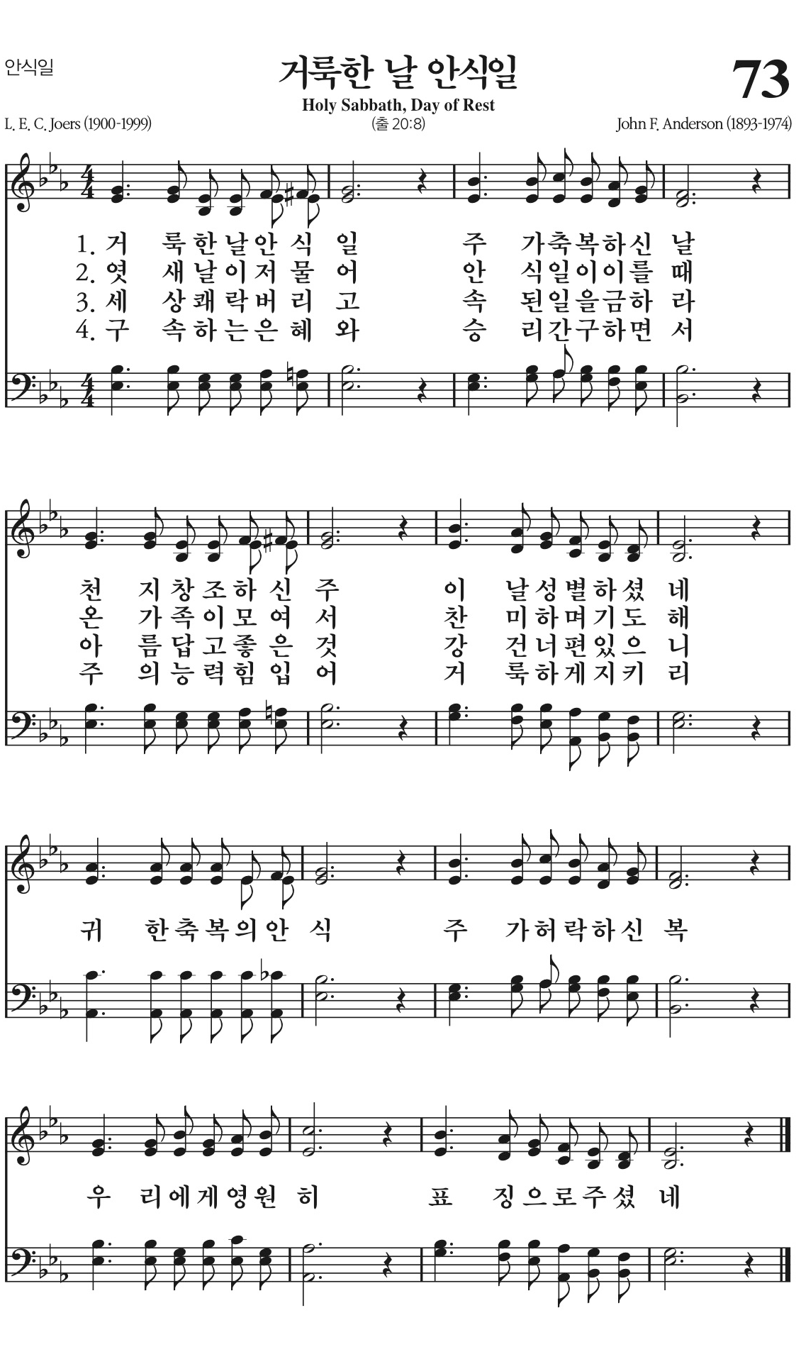 천지 창조하신 주 이날 성별하셨네