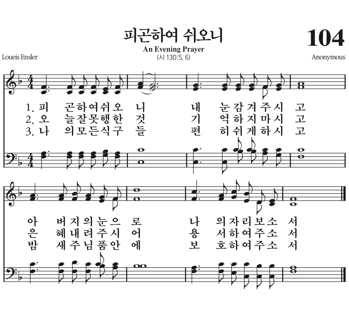 피곤하여 쉬오니 내 눈 감겨 주시고