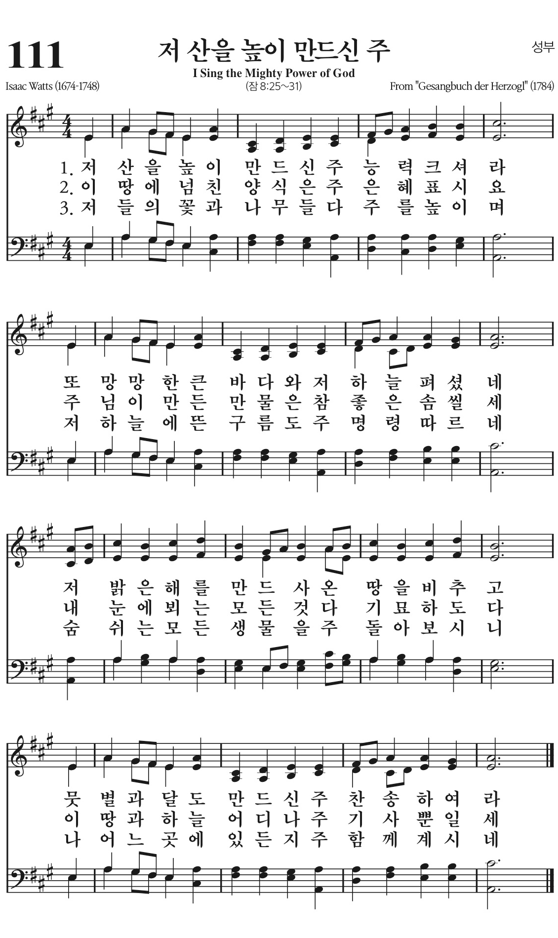저 들의 꽃과 나무들 다 주를 높이며