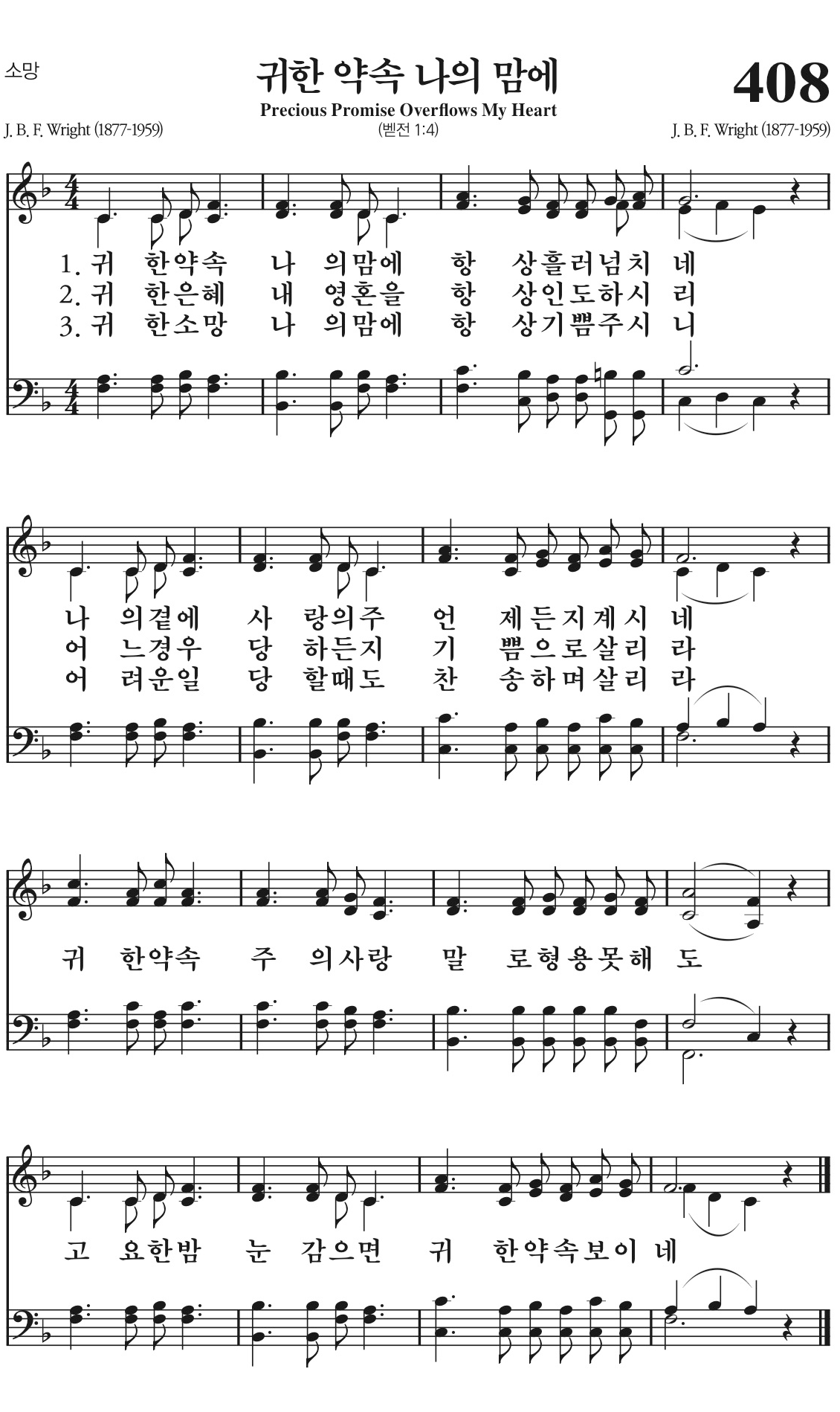 귀한 소망 나의 맘에 항상 기쁨 주시니
