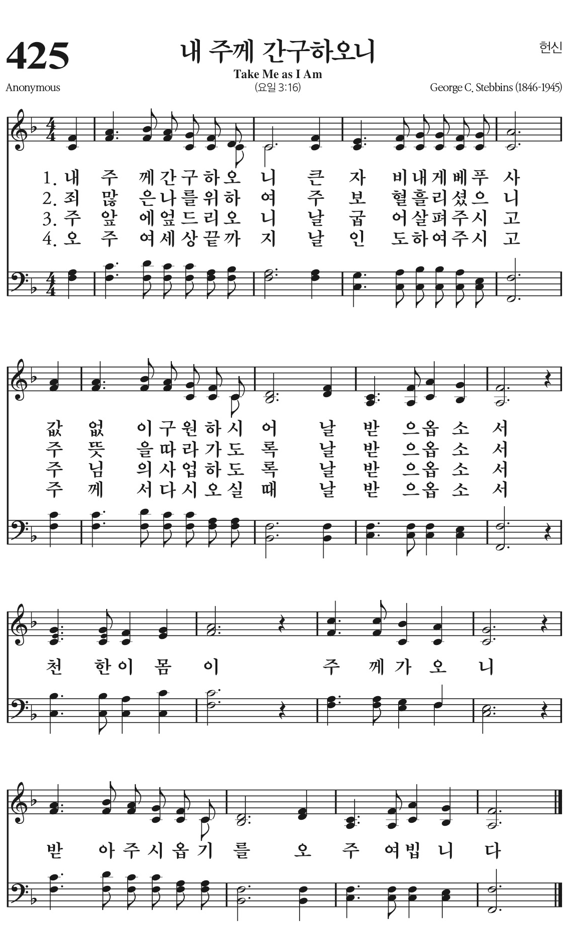 천한 이 몸이 주께 가오니