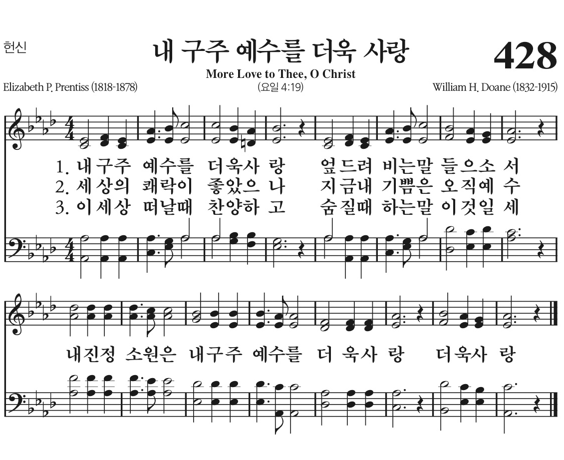 내 구주 예수를 더욱 사랑 엎드려 비는 말 들으소서
